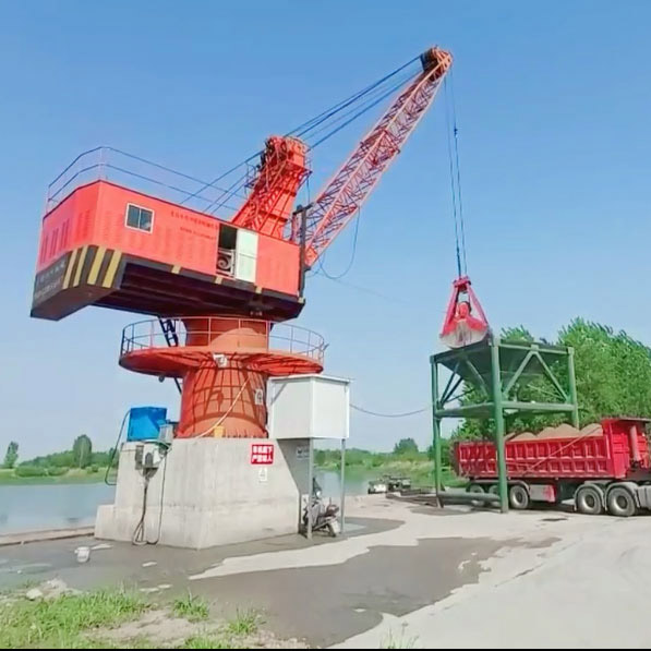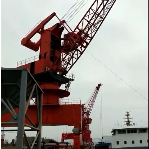 生产特点:将起重机械安装在专用的船体或囤船上的譬架式起重机,它可以进行船于岸或船与船之间的装卸作业,该机转盘重心较低,稳定性好,运转灵活,是长江、内湖理想的装卸设备。
